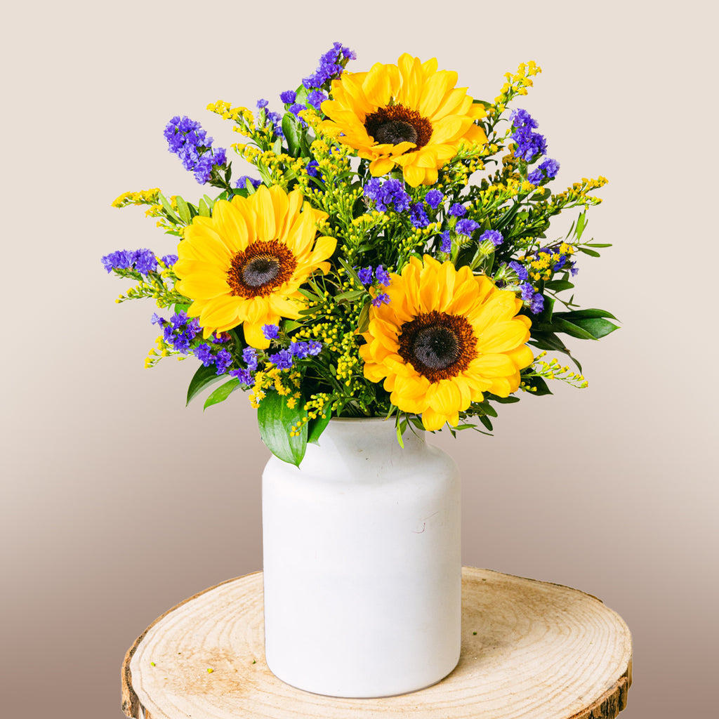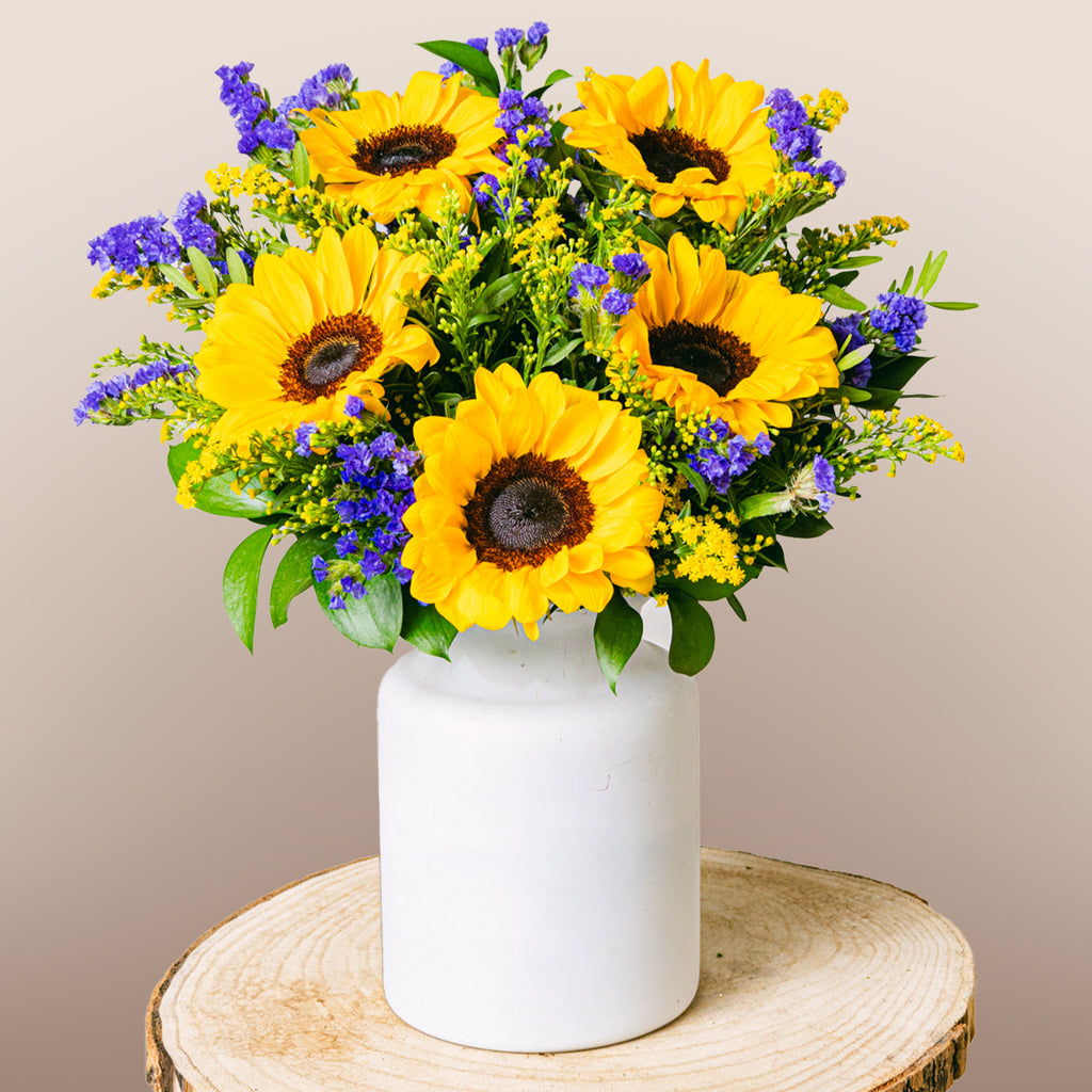 Ayçiçeklerinin enerjisi ve statice'nin zarafeti bir araya gelerek unutulmaz bir deneyim sunar. Her bakışta pozitif duyguları harekete geçirir.