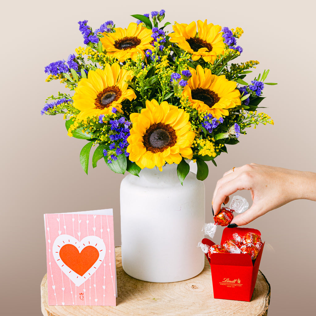 Güneşli ayçiçeklerinin ışıltısını ve statikin serin ferahlığını bir araya getirerek, saf mutluluğun büyüleyici bir karışımını yarattık. Ayçiçekleri her odayı aydınlatır ve tek bir mesajla gününüzü anında değiştirebilecek o özel kişi için unutulmaz bir hediyedir. "Teşekkür ederim" demenin ve onları yaz neşesiyle doldurmanın en iyi yoludur.